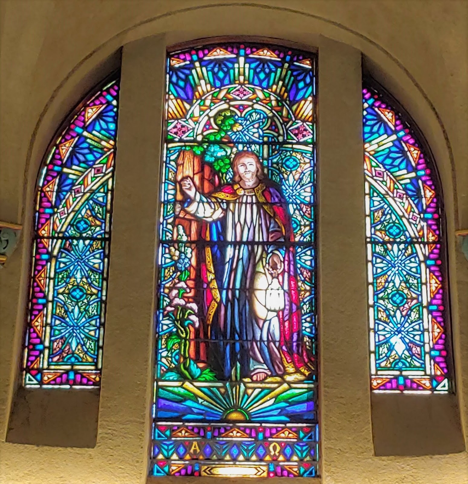 At the front of the chapel is a beautiful window of Christ knocking at the door.