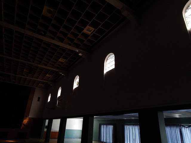 One of the most unusual things about this cultural hall was the stained glass windows lining both sides of the hall.